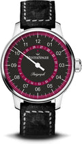 The Meistersinger Perigraph is the watch with date indication via an all-around open date window, from the collection of the renowned producer of single-dial men's watches . The dial has a special construction to make this masterpiece possible. This Meistersinger Perigraph has a 43-millimetre-wide watch case made of stainless steel. This men's watch houses a Swiss automatic mechanical movement. It has a black dial with green accents and scratch-resistant sapphire glass. Attached to the watch is a beautiful strap made of black leather with a petrol look. It has a bit of a vintage/worn look to it. The soothing single hand goes around once every 12 hours, so it is actually an extended hour hand.
